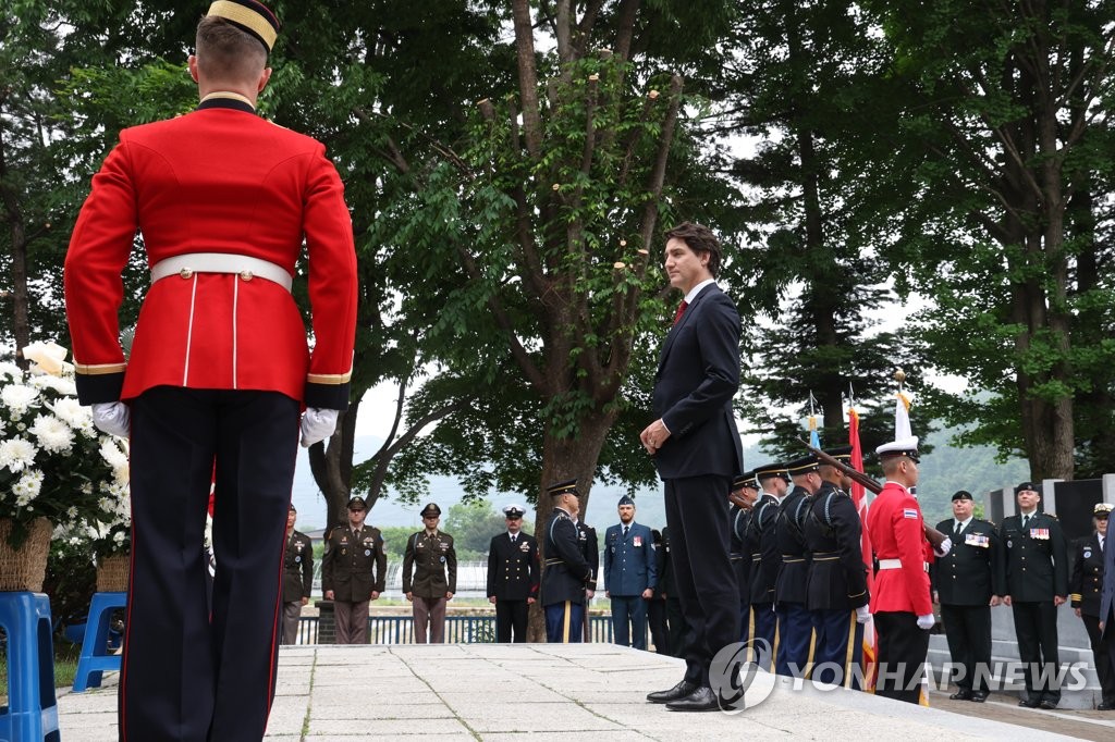 GAPYEONG, South Korea, May 18 (Yonhap) -- Canadian Prime Minister Justin Trudeau on Thursday paid tribute to the hundreds of Canadian soldiers who were killed in the 1950-53 Korean War during his visit to a historic battlefield in Gapyeong, northeast of Seoul.