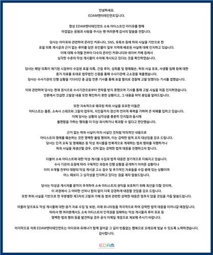 | ▲ 이담엔터테인먼트 입장문 전문 [이담엔터테인먼트 제공. 재판매 및 DB 금지] |