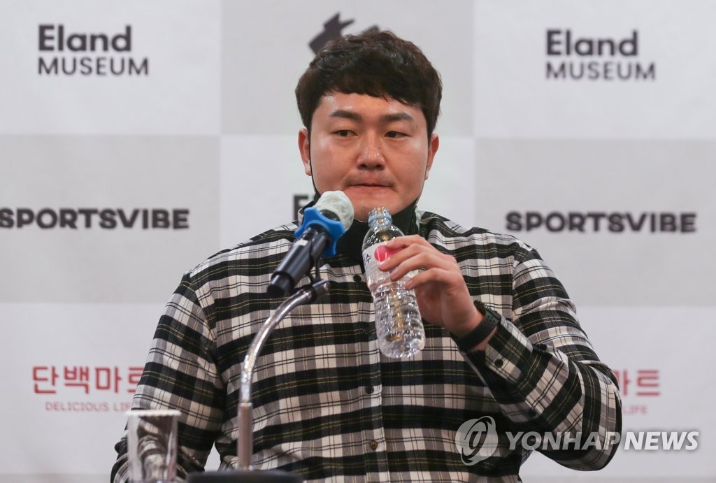 | ▲ 물 마시는 최지만 (서울=연합뉴스) 류효림 기자 = 메이저리거 최지만(탬파베이 레이스)이 5일 오후 서울 여의도 켄싱턴호텔에서 열린 기자간담회에서 물을 마시고 있다. 2021.2.5 ryousanta@yna.co.kr |