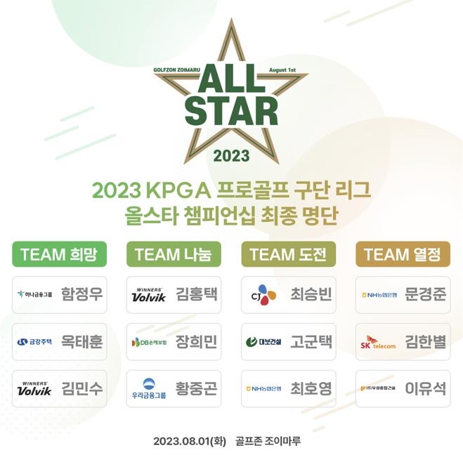 | ▲ KPGA 프로골프 구단 리그 올스타 챔피언십 명단 [KPGA 제공. 재판매 및 DB 금지] |
