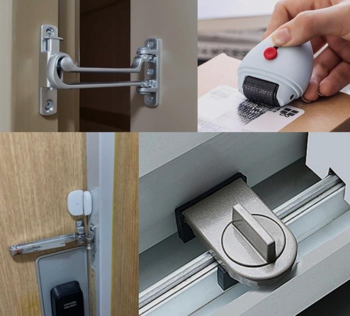 | ▲ 화성시, 여성안심패키지 제공 (화성=연합뉴스) 관문 안전걸이, 송장지우개, 스마트 문열림센서, 창문잠금장치(왼쪽 위부터 시계방향). [화성시 제공. 재판매 및 DB 금지] |