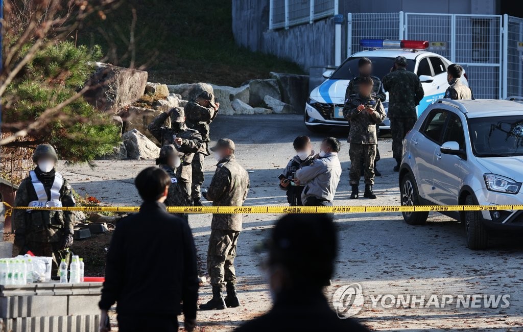 | ▲ An entrance to a mountain in Yangpyeong, 55 kilometers east of Seoul, is cordoned off on Nov. 21, 2022, after a fighter jet crash the previous day. (Yonhap) |