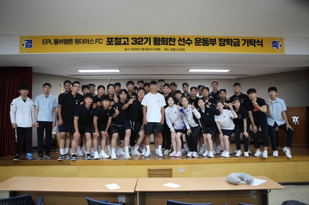 (포항=연합뉴스) 손대성 기자 = 축구 국가대표 공격수 황희찬(울버햄프턴) 선수가 모교에 장학금을 기부했다.