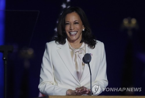 ▲ 카멀라 해리스 미국 부통령 당선인이 7일(현지시간) 델라웨어주 윌밍턴에서 열린 대선 승리 축하행사에서 연설하고 있다. [로이터=연합뉴스 자료사진]