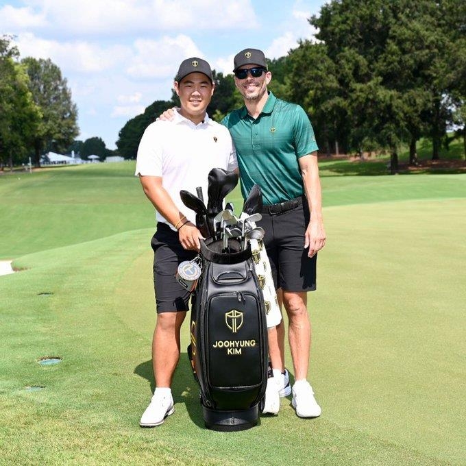 | ▲ 김주형과 그의 캐디 조 스코브런 [인터내셔널 팀 소셜 미디어 사진. 재판매 및 DB 금지] |