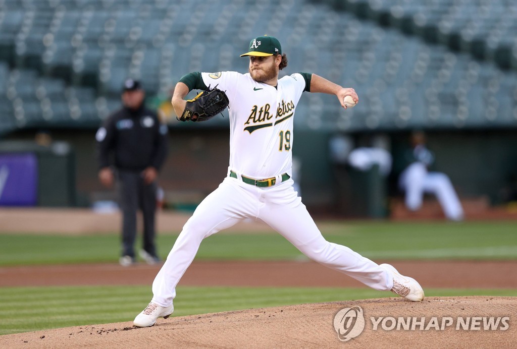 | ▲ 텅 빈 관중석 오클랜드 애슬레틱스 콜 어빈이 20일(한국시간) 미국 캘리포니아주 오클랜드 링센트럴 콜리세움에서 열린 볼티모어 오리올스와 홈 경기에서 공을 던지고 있다. 이날 경기장엔 단 3천748명의 관중이 입장했다. [AFP=연합뉴스] |
