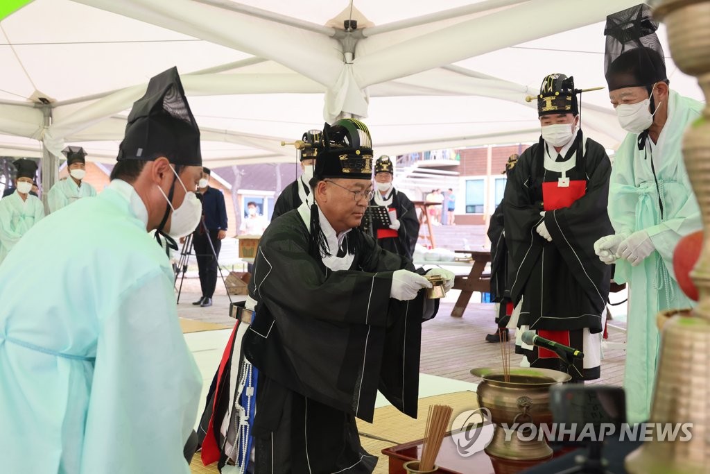 | ▲ "무사 안녕을 기원합니다" (양양=연합뉴스) 강원 양양군은 지역 내 해수욕장들이 개장한 8일 낙산해수욕장에서 김진하 군수와 군청 직원들이 참여한 가운데 개장 기간 무사 안녕을 기원하는 용왕제를 봉행했다. 2022.7.8 [양양군 제공·재판매 및 DB 금지] momo@yna.co.kr |