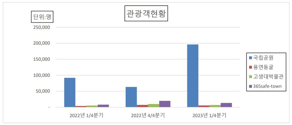 2023년 1분기 관광객은 코로나19 이전인 2019년 같은 기간 37만3천953명과 비교하면 59.3% 수준에 불과하다.