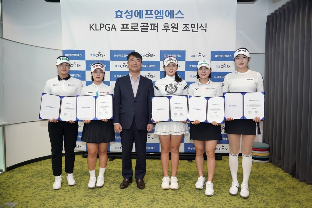 효성에프엠에스는 7일 "서울 강남구 본사에서 박현경과 재계약했고, 서어진, 전예성, 김민별, 박혜준과 신규 후원 계약을 체결했다"고 밝혔다.