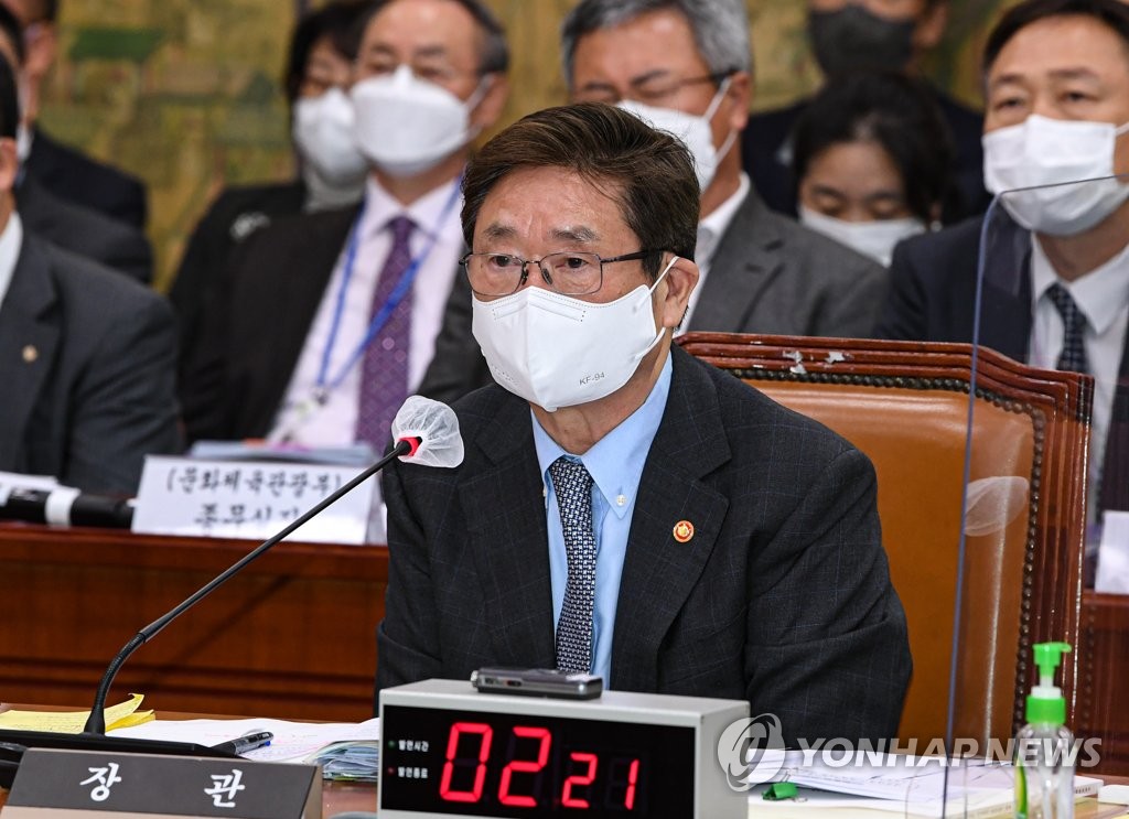| ▲ 답변하는 박보균 장관 (서울=연합뉴스) 백승렬 기자 = 박보균 문화체육관광부 장관이 24일 서울 여의도 국회 문화체육관광위원회 회의실에서 열린 종합 국정감사에서 문체부의 자료 제출 오류에 관해 재발 방지를 약속하고 있다. 2022.10.24 [국회사진기자단] srbaek@yna.co.kr |