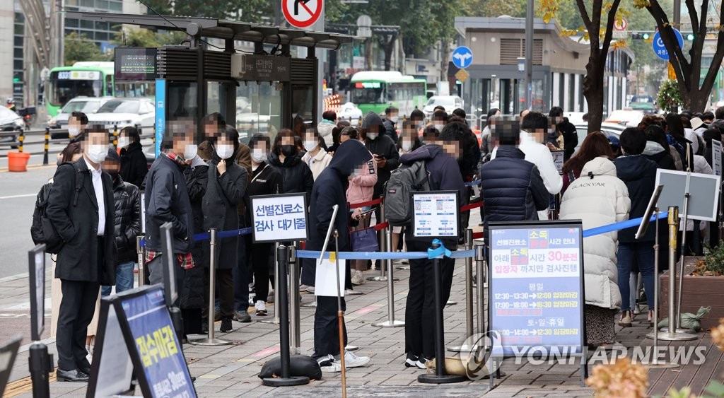 | ▲ People wait in line to take tests at a COVID-19 testing station in Seoul on Nov. 10, 2021, when the country reported 2,425 new cases. (Yonhap) |