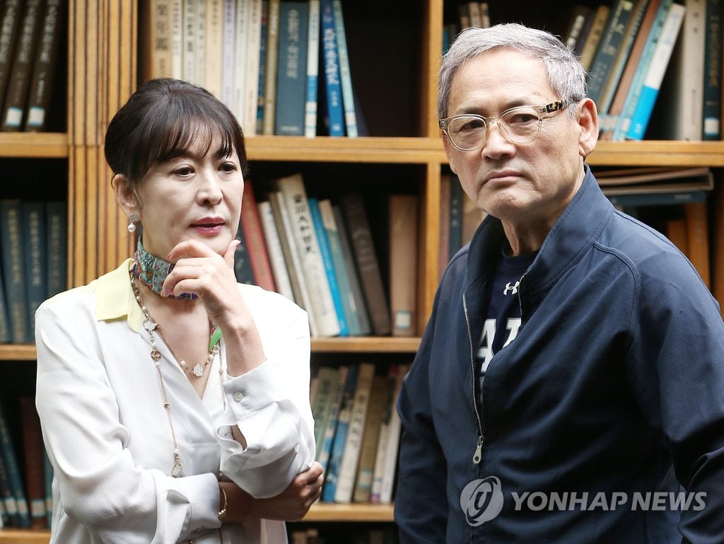 | ▲ 2016년 '햄릿' 주역 유인촌-윤석화 배우 유인촌(오른쪽)과 윤석화가 지난 2016년 6월 17일 연합뉴스와 인터뷰에 앞서 포즈를 취한 모습 [연합뉴스 자료사진] |