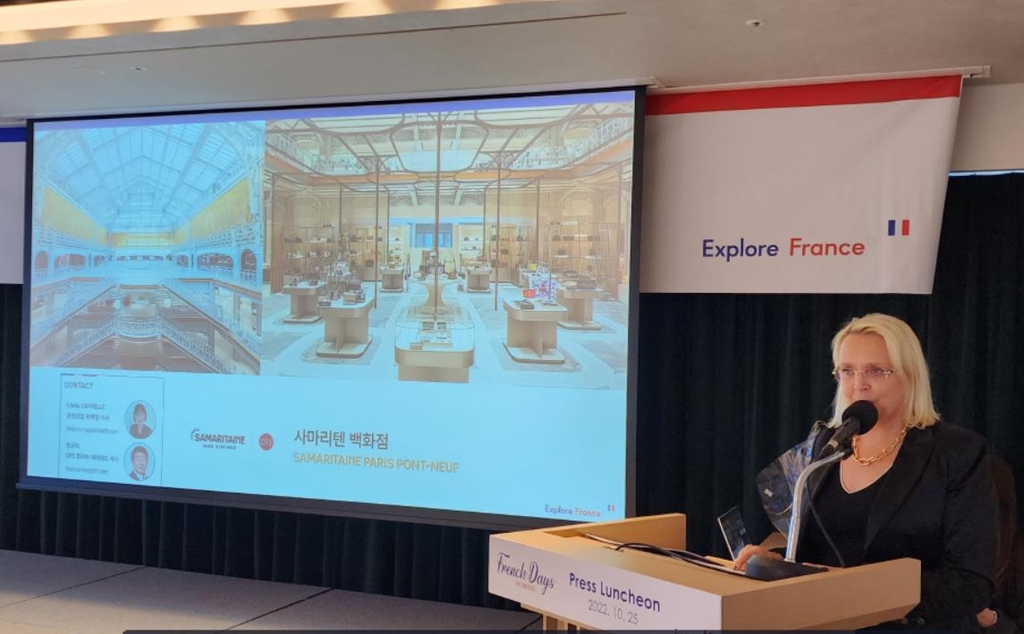 | ▲ 프랑스관광청 코린 풀키에 소장이 '프렌치 데이즈 인 서울' 행사에서 프랑스 관광 요소에 대해 설명하고 있다. [사진/성연재 기자] |