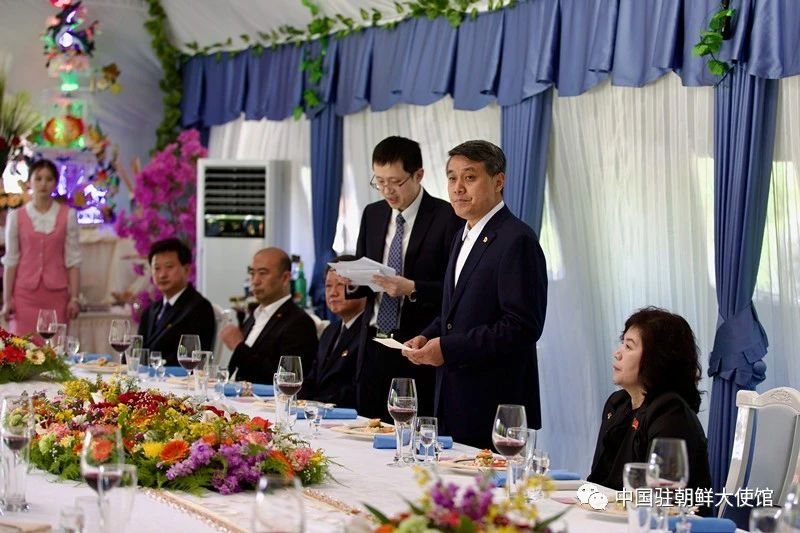| ▲ This photo, captured from the WeChat account of the Chinese Embassy in North Korea on May 9, 2023, shows Beijing's new ambassador to Pyongyang, Wang Yajun (2nd from R), speaking at a banquet following his meeting with North Korean Foreign Minister Choe Son-hui (R). (PHOTO NOT FOR SALE) (Yonhap) |