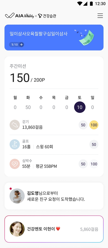 | ▲ AIA 바이탈리티 앱 이용 화면 [AIA생명 제공] |