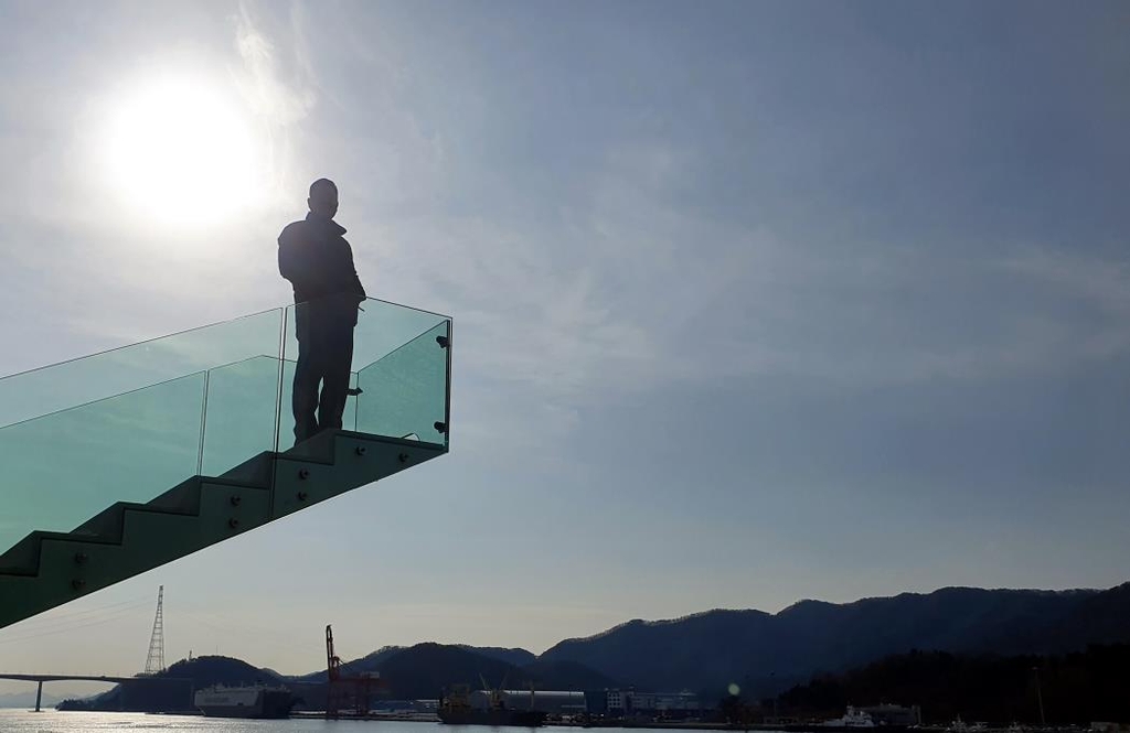 계단에 오르면 마산만을 가로지르는 마창대교 전경이 한눈에 들어온다.