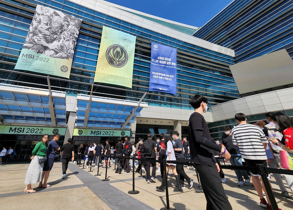 | ▲ MSI 보러 온 관객들 (부산=연합뉴스) 김주환 기자 = 29일 부산 해운대구 벡스코(BEXCO)에서 열린 리그 오브 레전드(LoL) 국제대회 '미드 시즌 인비테이셔널(MSI) 2022' 결승전에 관객들이 입장하고 있다. 2022.5.29 jujuk@yna.co.kr |