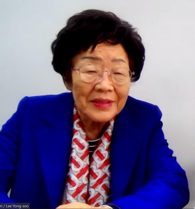 | ▲ 위안부 피해자 이용수 할머니. [줌 화상회의 화면 캡처. 재배부 및 DB 금지] |