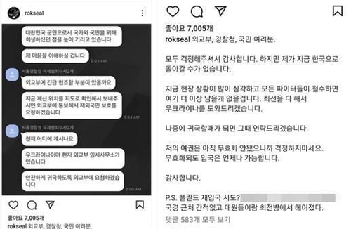 | ▲ 이근 전 해군특수전전단 대위 인스타그램 게시글 [이근 전 해군특수전전단 대위 인스타그램 캡처. 재판매 및 DB 금지] |