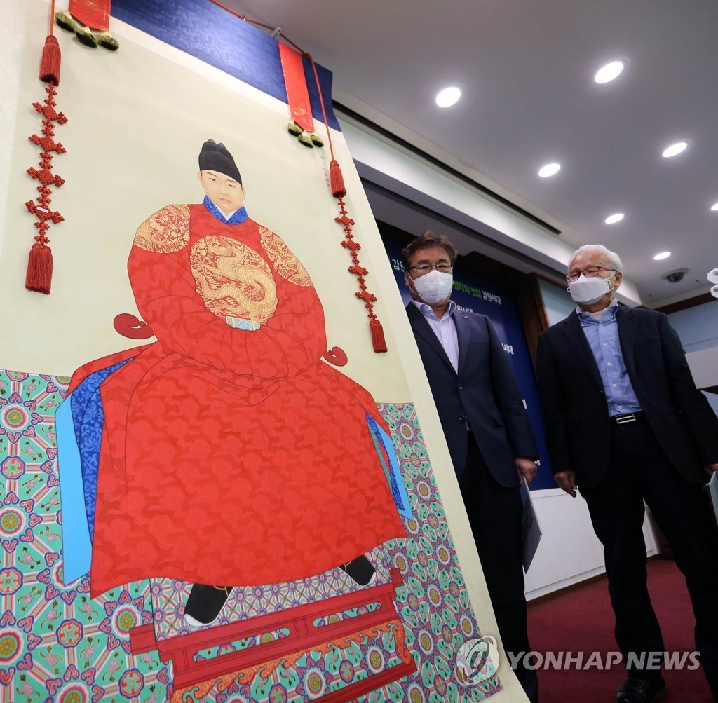 | ▲ '조선 비운의 왕' 단종 어진 공개 (춘천=연합뉴스) 국가표준영정 100호로 공식 지정된 조선 6대 왕 단종(端宗)의 어진(임금의 얼굴을 그린 그림)이 14일 공개됐다. 2021.4.14 [영월군 제공. 재판매 및 DB 금지] photo@yna.co.kr |