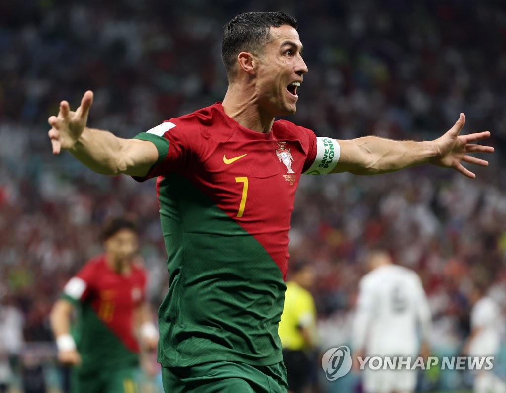 | ▲ 환호하는 호날두 (루사일=연합뉴스) 임헌정 기자 = 28일 오후(현지시간) 카타르 루사일 스타디움에서 열린 2022 카타르 월드컵 조별리그 H조 2차전 포르투갈 대 우루과이 경기. 포르투갈 호날두가 팀의 첫 득점 때 기뻐하고 있다. 2022.11.29 kane@yna.co.kr |