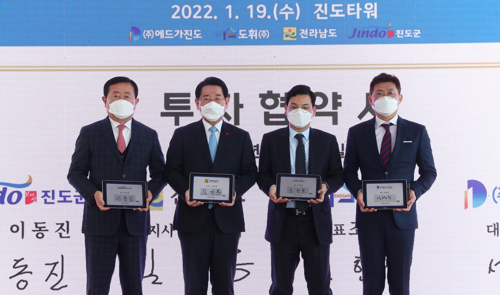 전남도는 19일 진도타워에서 도휘㈜의 자회사인 ㈜에드가진도와 2천억원 규모 관광 개발사업을 추진하는 내용의 투자협약을 했다.