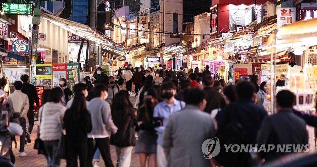 ▲ Hongdae, a popular nightlife district in western Seoul, is bustling with people on March 31, 2022. (Yonhap)