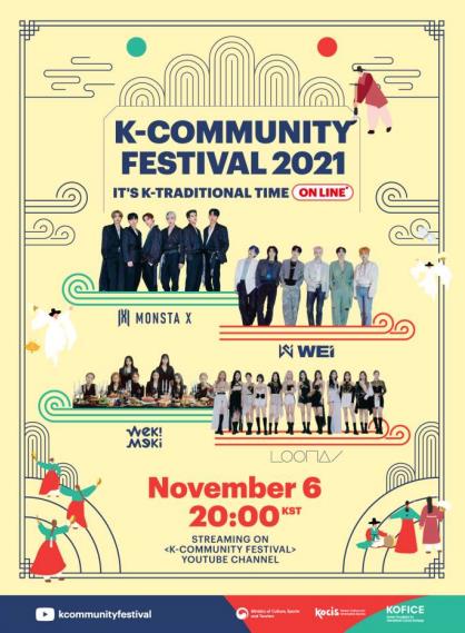 이번 행사에는 전통문화 배우기 도전을 함께 한 몬스타엑스(한량무), 이달의소녀(서예), 위키미키(소고춤), 위아이(민요) 등 K팝 그룹들이 출연한다. 이들은 앞선 경연의 분야별 우승자를 발표하고 직접 도전한 전통문화 공연 소감을 팬들과 나눈다. 자세한 내용은 공식 누리집(www.kcommunityfestival.com)에서 확인할 수 있다.