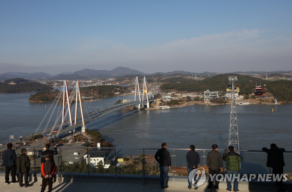 ▲ 해남 명량해상케이블카와 진도대교 (해남=연합뉴스) 진성철 기자 = 12월 6일 전남 해남군 울돌목(명량) 해협의 명량해상케이블카와 진도대교. 2021.12. 6 zjin@yna.co.kr