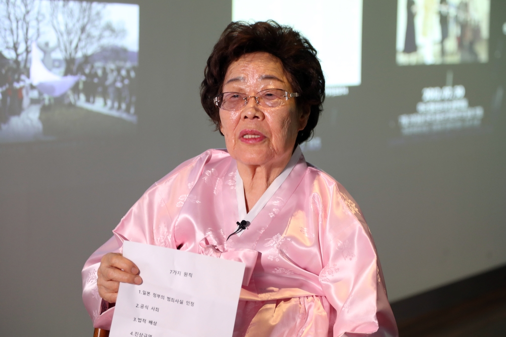 이 할머니는 편치 않은 몸 상태에도 힘겹게 말을 이어가면서도 잘못을 뉘우치지 않는 일본 정부를 지적할 때만큼은 목소리를 높였다.