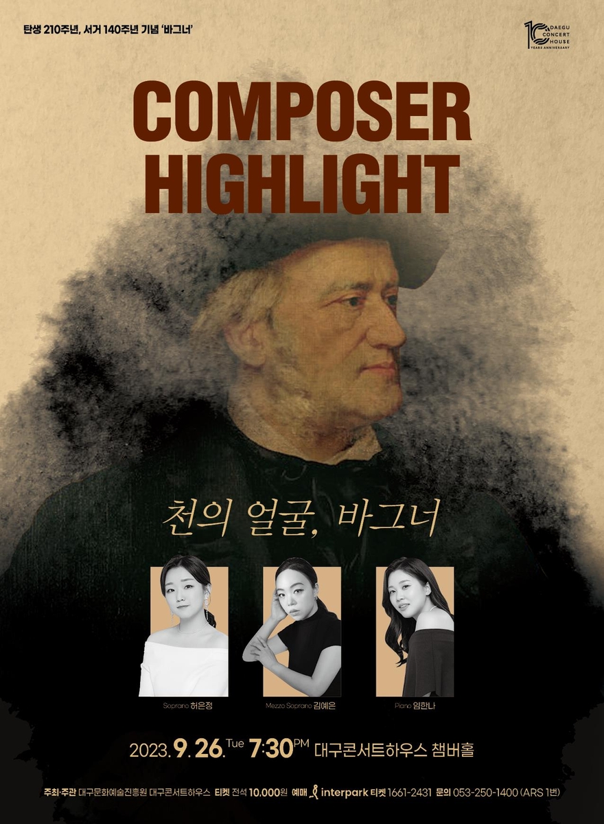 (대구=연합뉴스) 류성무 기자 = 대구콘서트하우스는 오는 26일 오후 7시 30분 챔버홀에서 독일을 대표하는 작곡가 바그너의 작품을 소개하는 공연을 개최한다고 13일 밝혔다.