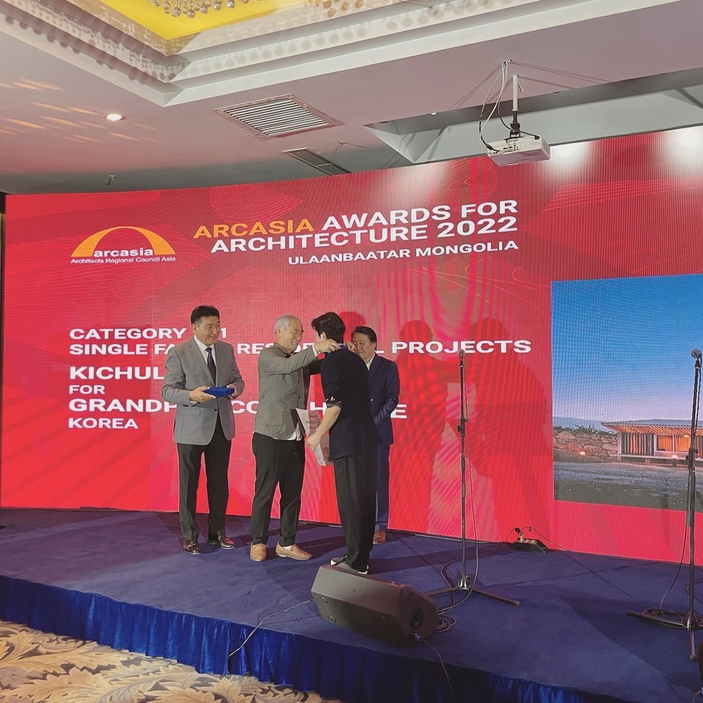 19일 건축업계에 따르면 아키텍케이 건축사사무소는 지난 6일 몽골 울란바토르에서 열린 2022 아시아건축사협의회 건축상 시상식에서 카테고리 A1(주거) 단독주택 부문 '골드메달' 수상 대상으로 선정됐다.