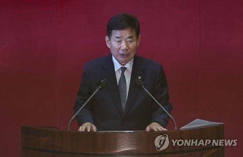 | ▲ Rep. Kim Jin-pyo of the main opposition Democratic Party speaks to lawmakers after his election as new National Assembly speaker on July 4. (Yonhap) |