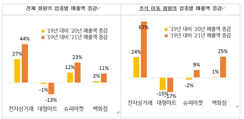 2021년 추석 준비기간에는 2019년 대비 13% 감소해 저조한 매출을 이어갔다.