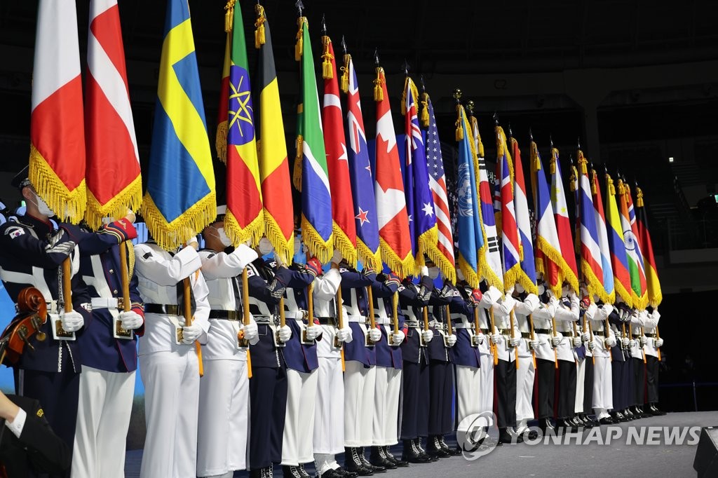 Yoon expressed his respects to South Korean veterans and foreign veterans who fought under the U.N. flag, saying that the "freedom, peace and prosperity that the South enjoys today were built on the foundation of their sacrifice and dedication."