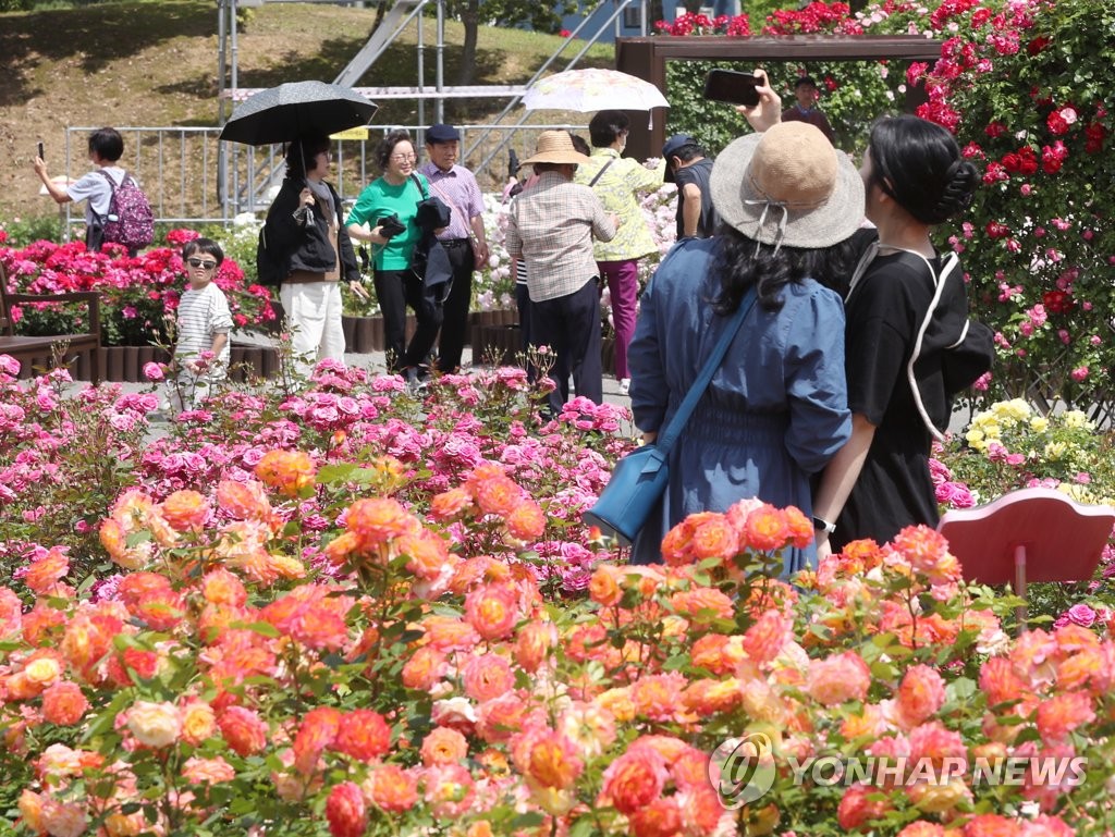 가족 단위 관광객이나 친구, 연인과 함께 온 시민들은 장미 사이로 마련된 산책로를 걸으며 사진을 찍거나, 그늘 사이에서 장미의 향연을 감상했다.