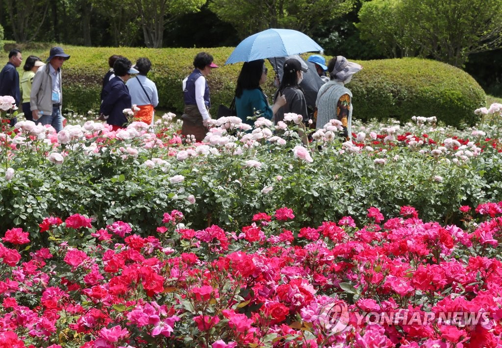 제15회 울산대공원 장미축제 첫날을 맞은 24일 울산 남구 울산대공원 장미원 5만6천174㎡에는 형형색색의 장미꽃 300만 송이가 수 놓였다.