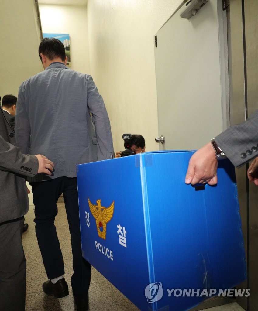 During the raid, about 10 investigators from the Daegu Metropolitan Police Agency searched the city hall's "new media office" in charge of the city's YouTube channel at 9 a.m. for four hours and seized boxes of evidence.