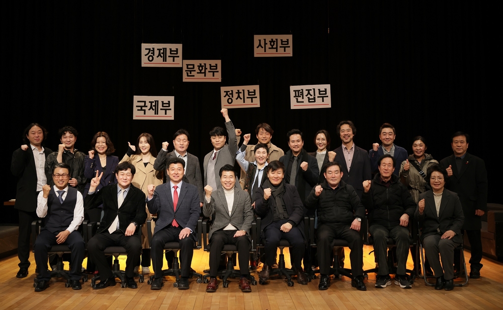 ▲ 송파구민회관에서 연극 '부장들' 배우들과 함께 기념촬영 하는 서강석 송파구청장 [송파구 제공. 재판매 및 DB 금지]