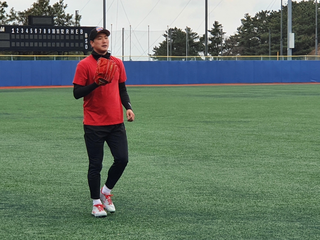 김광현은 캐치볼 거리를 100m까지 늘렸다. 함께 캐치볼한 정우람, 김이환, 임준섭은 물론이고 같은 구장에서 훈련한 호원대 선수들도 김광현의 구위에 감탄했다.