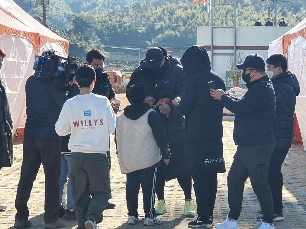 류현진은 훈련을 시작하기 전, 자신에게 다가온 어린이 팬들에게 다정하게 사인하고 사진 요청에도 응했다.