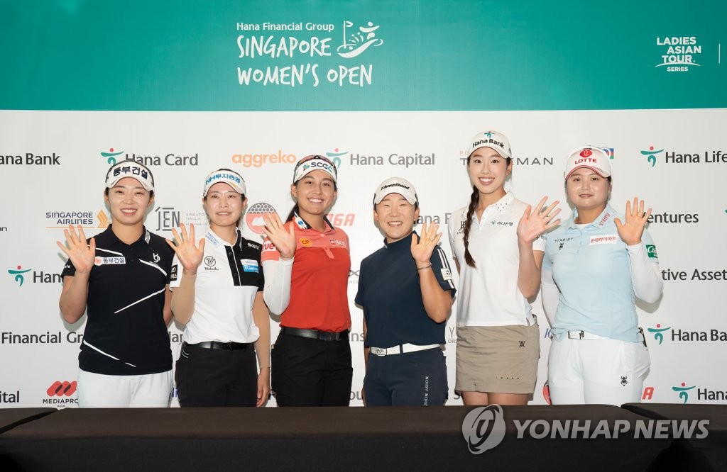 | ▲ 하나금융그룹 싱가포르 여자오픈 공식 기자회견 (서울=연합뉴스) 7일 열린 '하나금융그룹 싱가포르 여자오픈' 공식 기자회견에서 김수지(왼쪽부터), 박민지, 아타야 티띠꾼, 신지애, 노예림, 최혜진이 기념 촬영하고 있다. 2022.12.7 [하나금융그룹 싱가포르 여자오픈 대회 조직위원회 제공. 재판매 및 DB 금지] photo@yna.co.kr |