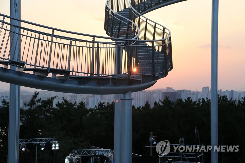 | ▲ 포항 풍광 한눈에 (포항=연합뉴스) 손대성 기자 = 18일 경북 포항시 북구 환호공원에서 제막한 국내 최대 규모 체험형 조형물 '스페이스워크' 전경. 2021.11.18 sds123@yna.co.kr |