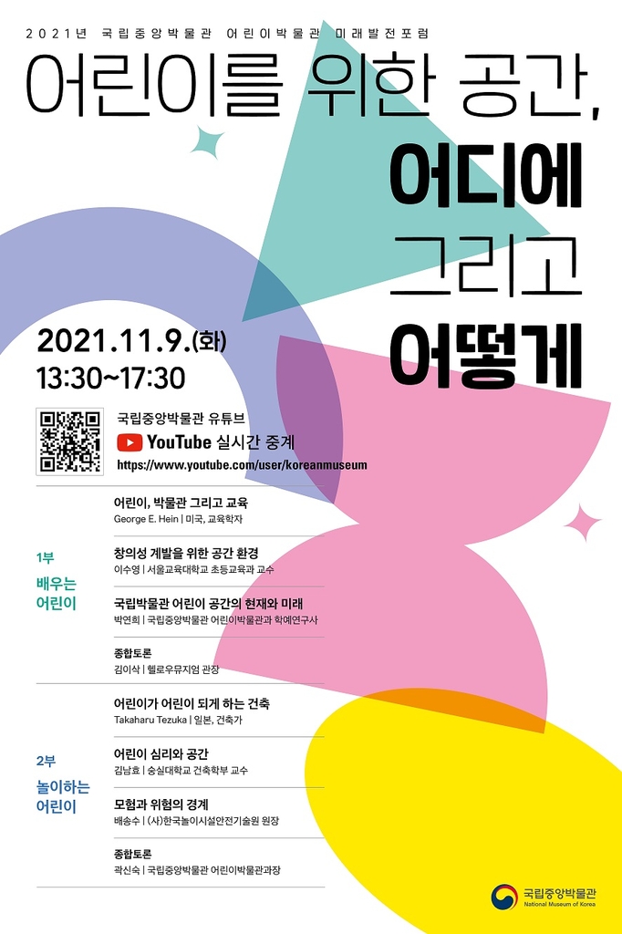 주제는 '어린이를 위한 공간, 어디에 그리고 어떻게'이다. 연구자들이 '어린이, 박물관 그리고 교육', '국립박물관 어린이 공간의 현재와 미래', '어린이가 어린이 되게 하는 건축' 등에 대해 이야기한다.
