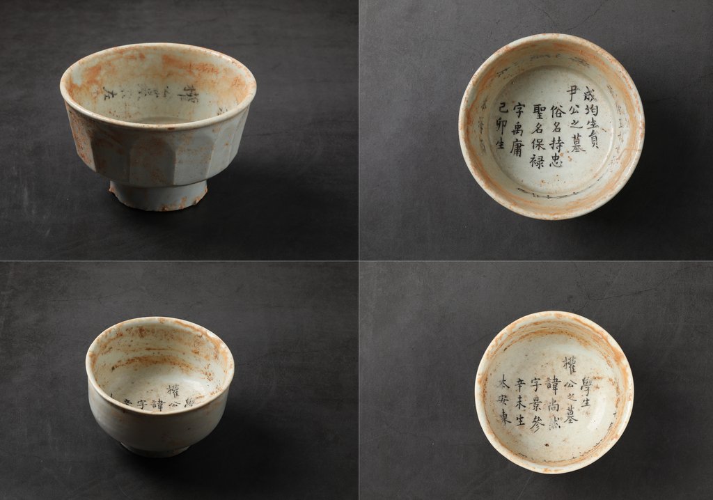| ▲ 한국 천주교 첫 순교복자 윤지충·권상연의 백자사발 지석 (서울=연합뉴스) 최근 전북 완주의 초남이성지에서 한국 천주교회 첫 순교자 윤지충 바오로와 권상연 야고보 유해가 확인된 가운데 이들 묘에서 함께 출토된 백자사발 지석(誌石)의 묵서명(墨書銘) 내용이 지난 9월 24일 상세 공개됐다. 위쪽 좌우는 윤지충 바오로, 아래쪽 좌우는 권상연 야고보의 백자사발 지석이다. 2021.9.24 [천주교 전주교구 제공. 재판매 및 DB 금지] |