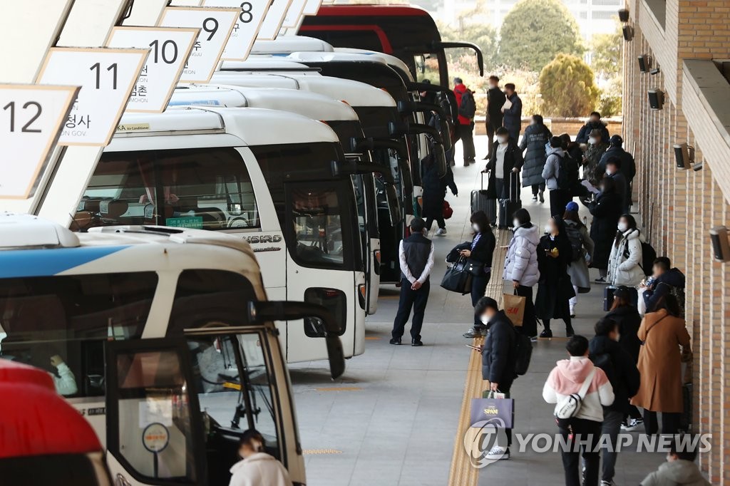 | ▲ 귀성길 오르는 시민들 (서울=연합뉴스) 진연수 기자 = 설 연휴를 앞둔 28일 서울 서초구 고속버스터미널에서 귀성객들이 버스에 탑승하고 있다. 2022.1.28 jin90@yna.co.kr |