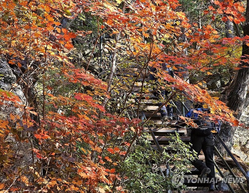 단풍이 절정을 이룬 강원 설악산에는 수만 명의 인파가 몰렸다.