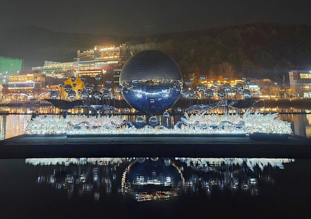 | ▲ 수성못에 전시된 대형 미러볼 [수성구 제공. 재판매 및 DB 금지] |