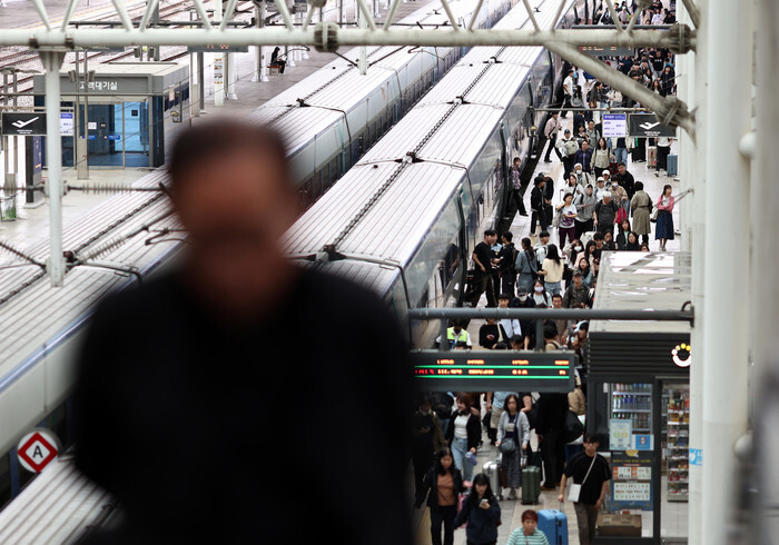 Seoul Station in central Seoul is crowded with travelers on Oct. 7, 2025, a day after Chuseok -- the Korean fall harvest festival. This year's extended Chuseok holiday runs from Oct. 3 to Oct. 9. (Yonhap)