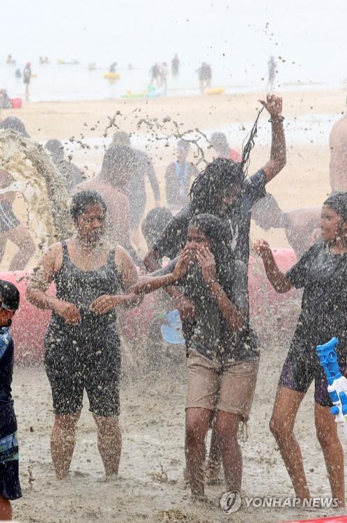 (보령=연합뉴스) 정찬욱 기자 = "머드 체험, 시원한 물세례…너무 신나고 재밌어요."